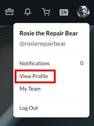 To view your profile, log in to iFixit.com and click on your avatar in the top right corner. Select “View Profile” from the dropdown menu.